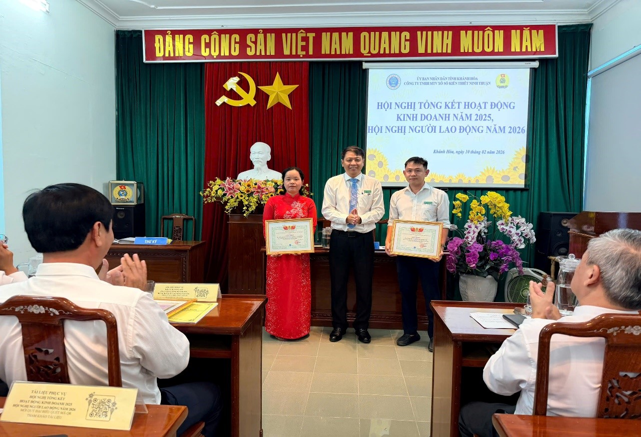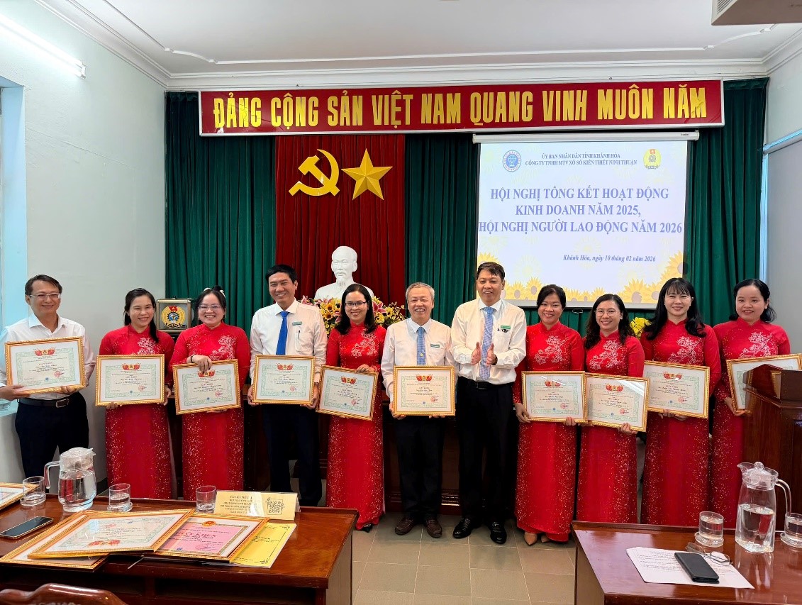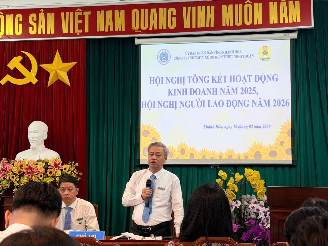 Ngày 10/02/2026, Công ty TNHH MTV xổ số kiến thiết Ninh Thuận đã tổ chức Hội nghị tổng kết hoạt động kinh doanh năm 2025 và Hội nghị Người lao động năm 2026. Hội nghị là dịp đánh giá toàn diện kết quả đạt được trong năm 2025, phát huy quyền làm chủ của người lao động, đồng thời thống nhất phương hướng, nhiệm vụ và giải pháp thực hiện trong năm 2026.